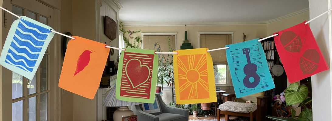 Welcome to Paw Print Block Printing, handmade printed items by Sally Gore. This is a niche site, showcasing items I make for fun during my downtime and to make available to friends and friends of friends. The Peace Flags show the most up-to-date options for all items. I’m happy to print on fabric or paper. You can choose colors and prints for almost all items and, depending on what supplies that I have on hand, I’ll get them to you quickly. Local friends can arrange for hand-off delivery. Mailing is available for the price of packaging and shipping.